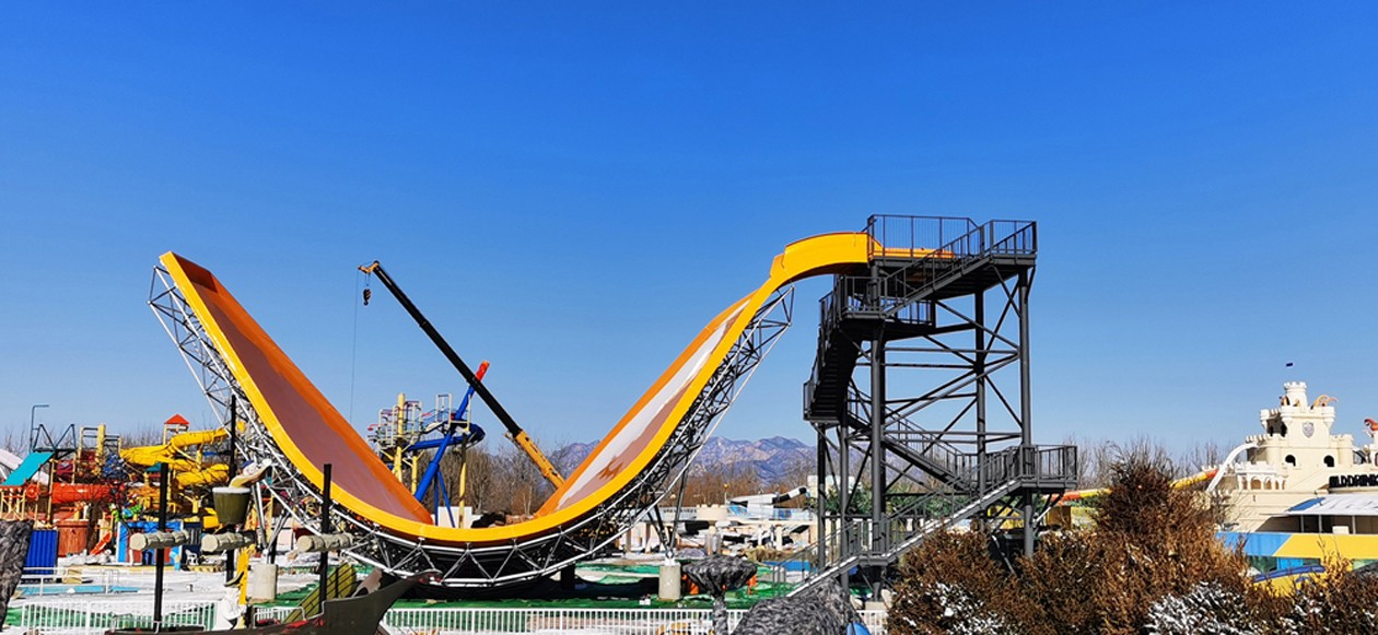 登上十幾米高的起滑平臺,沿著幾乎垂直的滑道壁面瞬間跌滑,高速穿越谷底,完成一次只留下尖叫的刺激記憶。